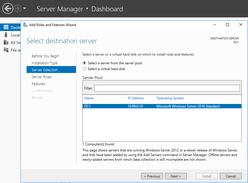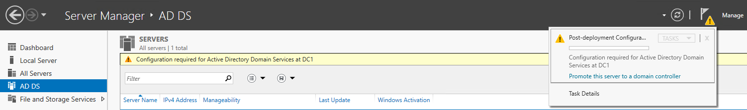 On Server Manager, left hand side, you now see ‘AD DS’.